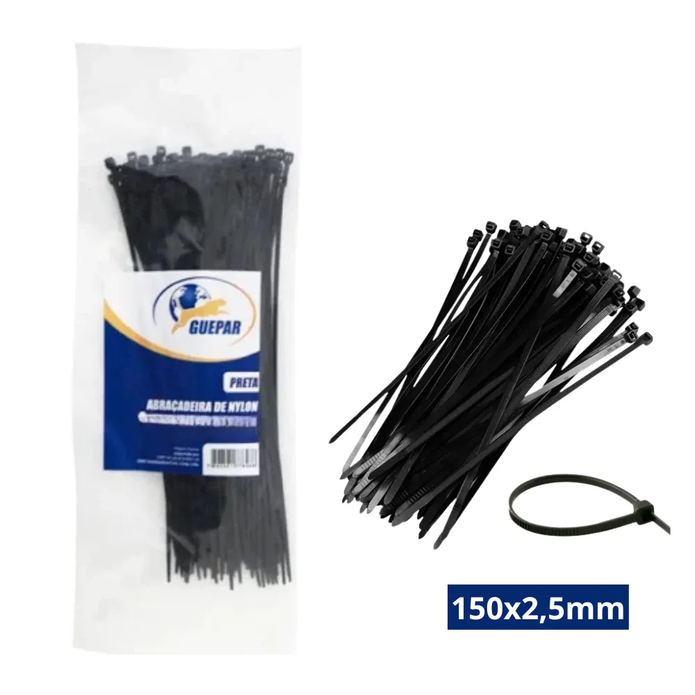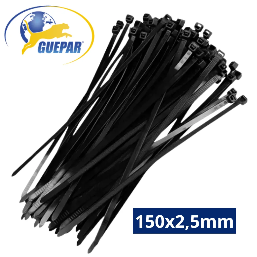 Abraçadeira de Nylon 2,5x150mm Preta Guepar — Pacote com 100 Unidades para Fixação Profissional