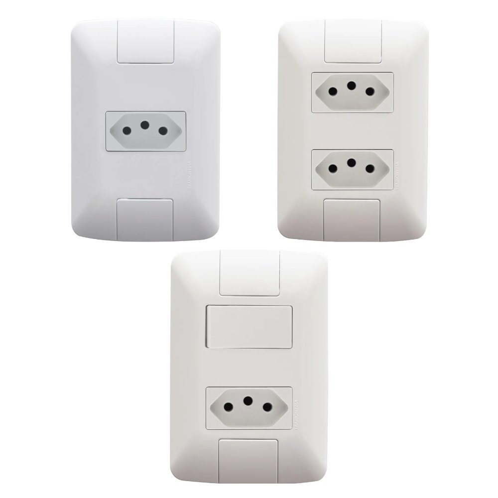 Conjunto Placa Tomada Interruptor Branco 10A 250V 20A/250V Tramontina Linha Aria Liz Casa Escritório Iluminação Casa