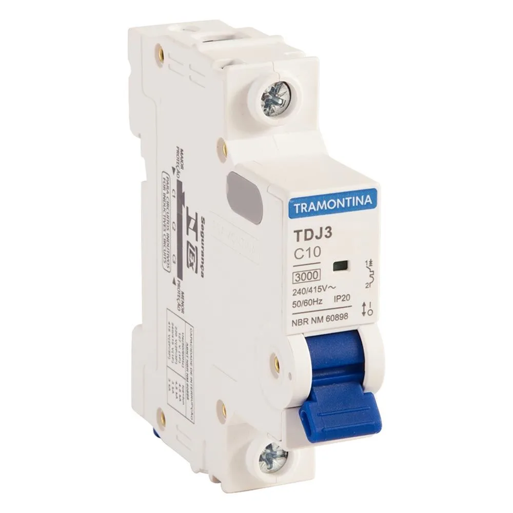 Minidisjuntor Monopolar 10A Tramontina TDJ3-1C10 — Proteção Elétrica para Residências e Comércios