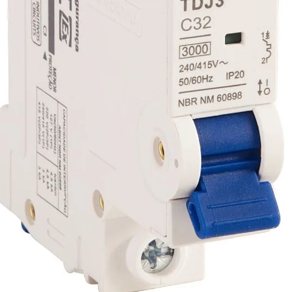 O modelo TDJ3-1C32 é monopolar, ou seja, protege apenas um condutor fase. Em instalações trifásicas, ele pode ser utilizado para proteger circuitos derivados monofásicos alimentados a partir de um quadro trifásico, como tomadas e iluminação individuais. Para proteger cargas trifásicas, é necessário utilizar disjuntores tripolares com as mesmas especificações de corrente nominal e capacidade de ruptura adequadas ao projeto.
