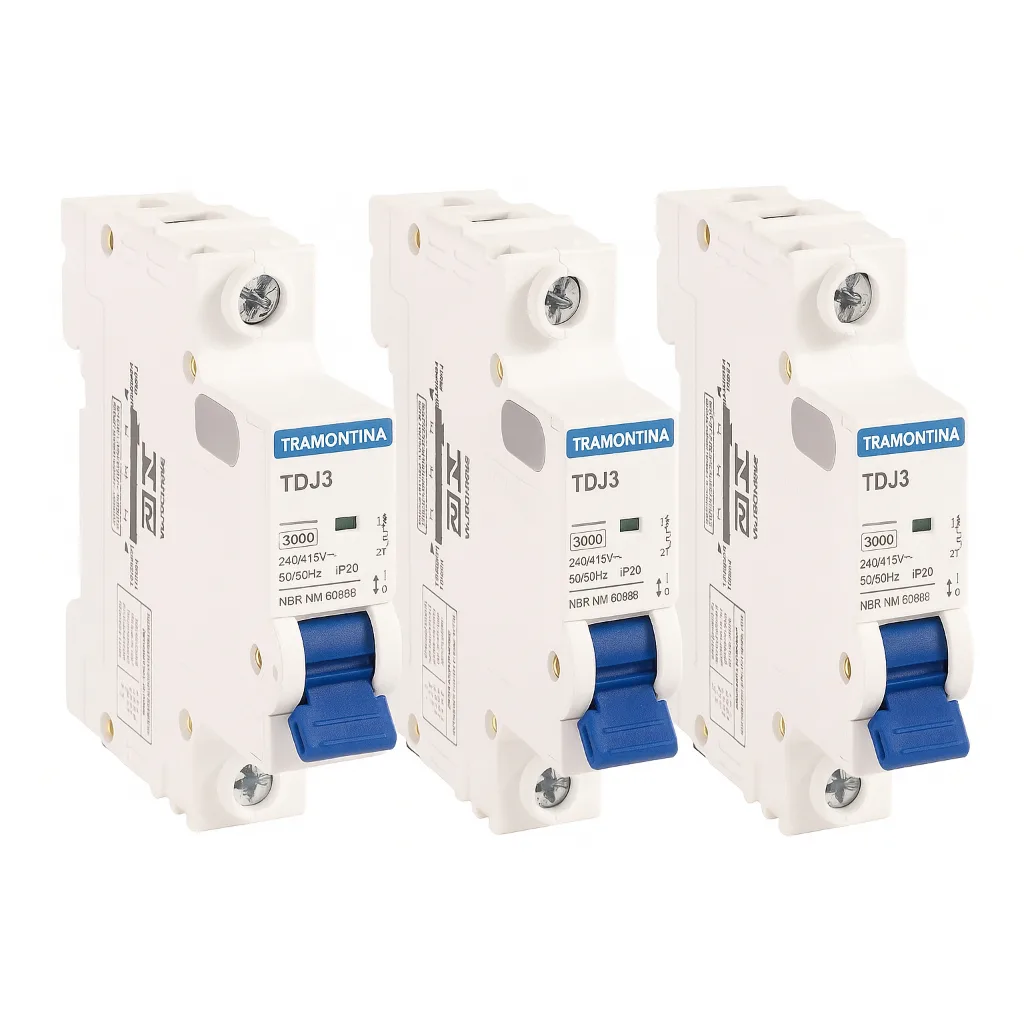 A capacidade de interrupção de 3kA indica a corrente máxima de curto-circuito que o dispositivo consegue interromper com segurança sem se destruir ou causar arcos elétricos perigosos. Em instalações residenciais e comerciais de pequeno e médio porte, a corrente de curto-circuito raramente ultrapassa esse valor, tornando o TDJ3 tecnicamente adequado para a grande maioria dessas aplicações. Instalar um disjuntor com capacidade de interrupção inferior à corrente de curto-circuito do ponto de instalação é uma falha grave que pode resultar em explosão do dispositivo e incêndio.