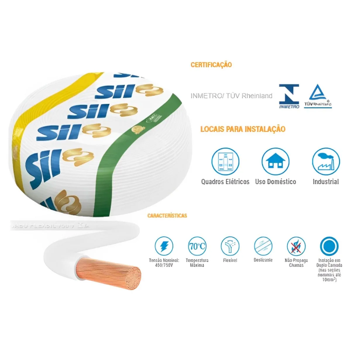 Cabo FlexSil 750V 2,5mm Branco — Rolo com fio 2 5mm 100 metros para Instalações Elétricas