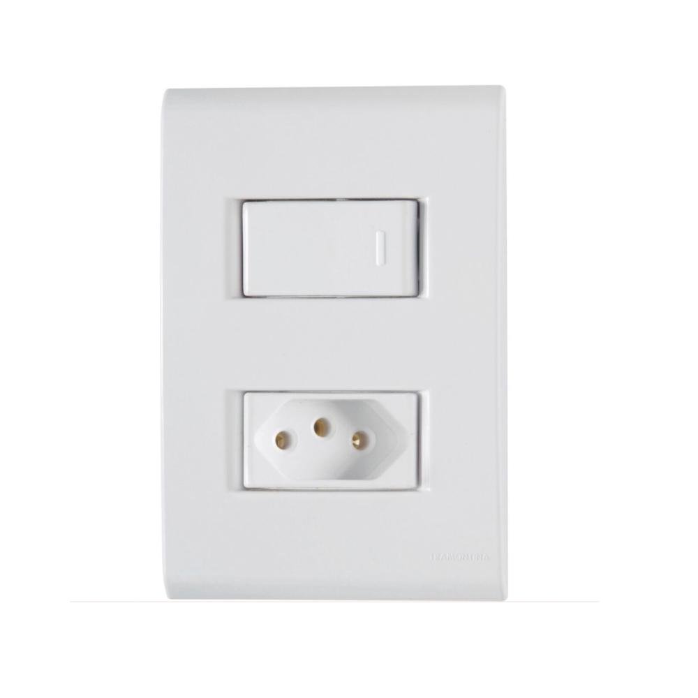| Composição do conjunto | 1 placa 4×2 + 1 interruptor simples + 1 tomada 2P+T |