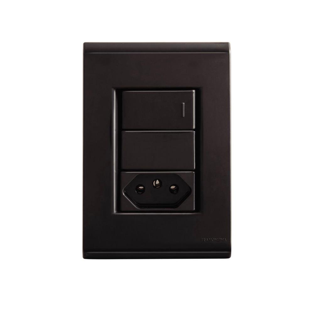 Conjunto Placa 4×2 com Interruptor e Tomada Tramontina Liz Grafite para Instalações Elétricas Modernas
