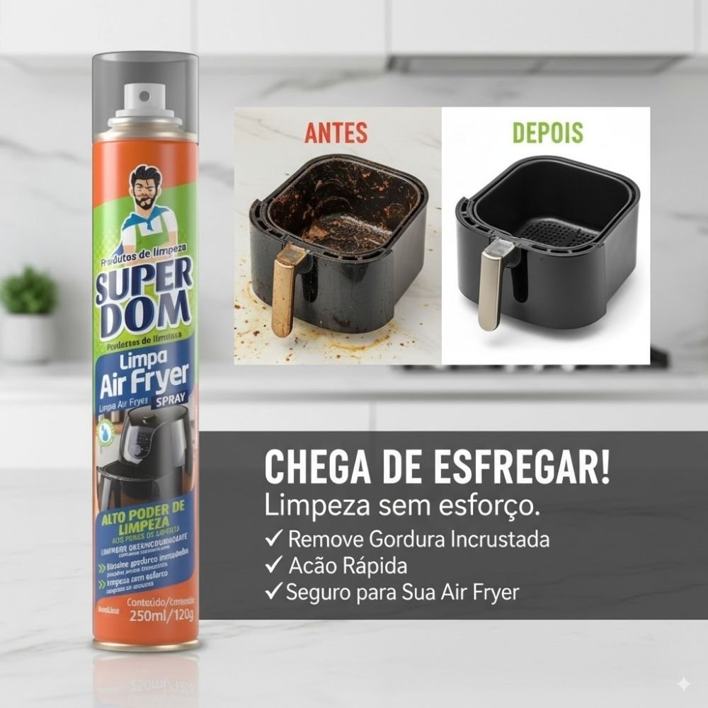 Limpador Air Fryer Super Dom 250ml Desengordurante Limpa Potente Cozinhas Higienização Rápida Seguro Fritadeira